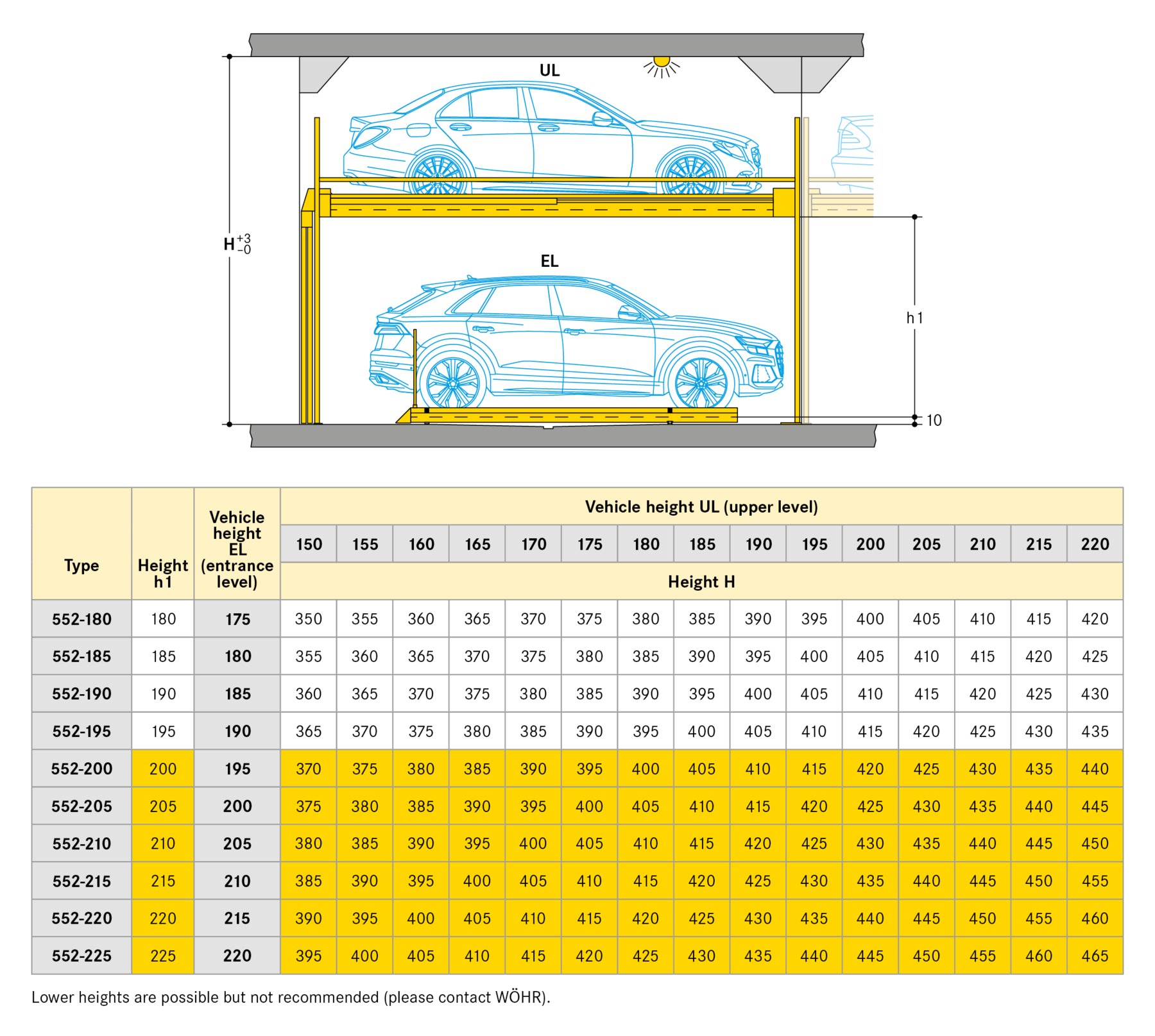 Alle nieuwe Combiliften zijn uiterst flexibel, omdat we elke 5 cm een nieuwe hoogte kunnen creëren om voertuigen te parkeren met een