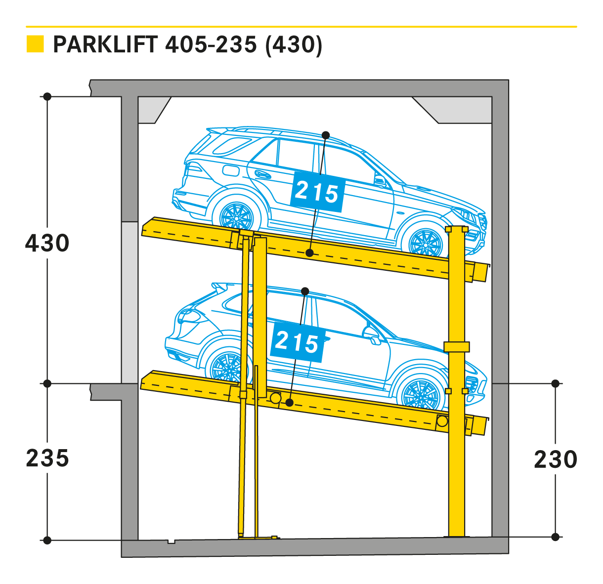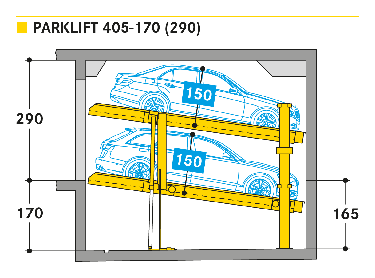 De nieuwe Parklift 405 komt met dezelfde innovaties als de Parklift 450 op de markt en heeft nog een voordeel. In de Parklift 450 kunnen voertuigen van dezelfde grootte als in de Parklift 450 geparkeerd worden met een nog lagere plafondhoogte, terwijl de onderste parkeerplaats gekanteld is. Dit is een antwoord op de groeiende autoafmetingen en de krimpende ruimte. Het onderste platform is toegankelijk met een helling van 14%. Het bovenste platform heeft een minimale hellingshoek van 2 %, wat helpt bij de afwatering van de bovenste parkeerplaats. Het enkele systeem is voor 2 auto's, het dubbele systeem voor 4 auto's.